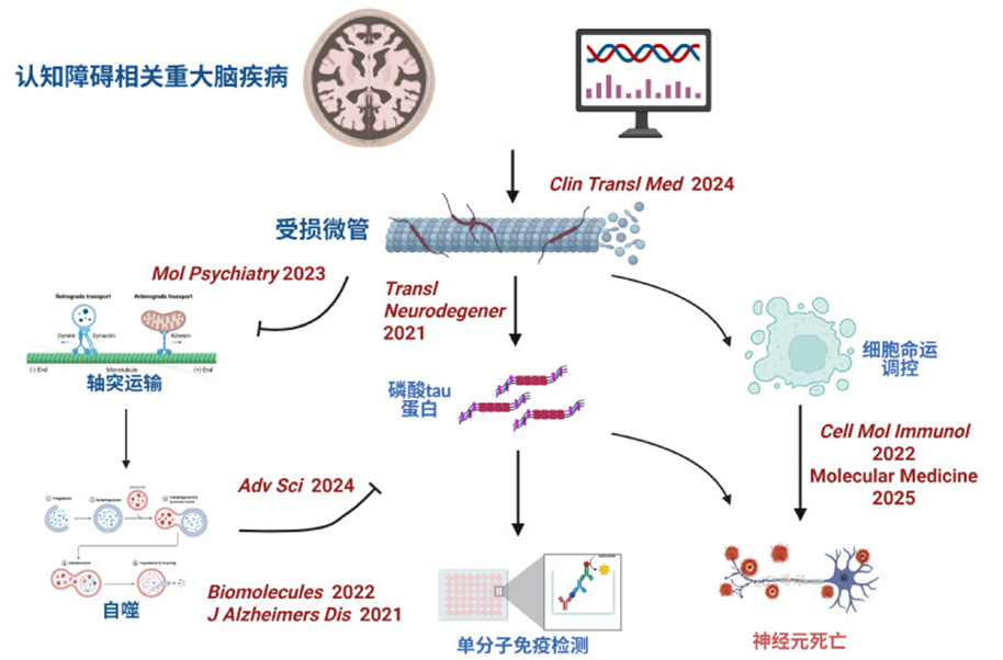 围绕认知障碍相关重大脑疾病,如创伤性脑损伤、阿尔茨海默病、多发性硬化的发病机制及早前诊断靶点开展研究,取得了系列研究成果,发表高水平论文十余篇,其中以第一或通讯作者(含共同)在Advanced ScienceCellular & Molecular ImmunologyTranslational NeurodegenerationClinical and Translational Medicine等杂志发表SCI论文8篇,并被CellNature Reviews NeuroscienceImmunity等知名杂志引用,总引用次数700+,h指数10(个人主页,https://scholar.google.com.hk/citations?user=JDVFzXsAAAAJ&hl=zh-CN)。
