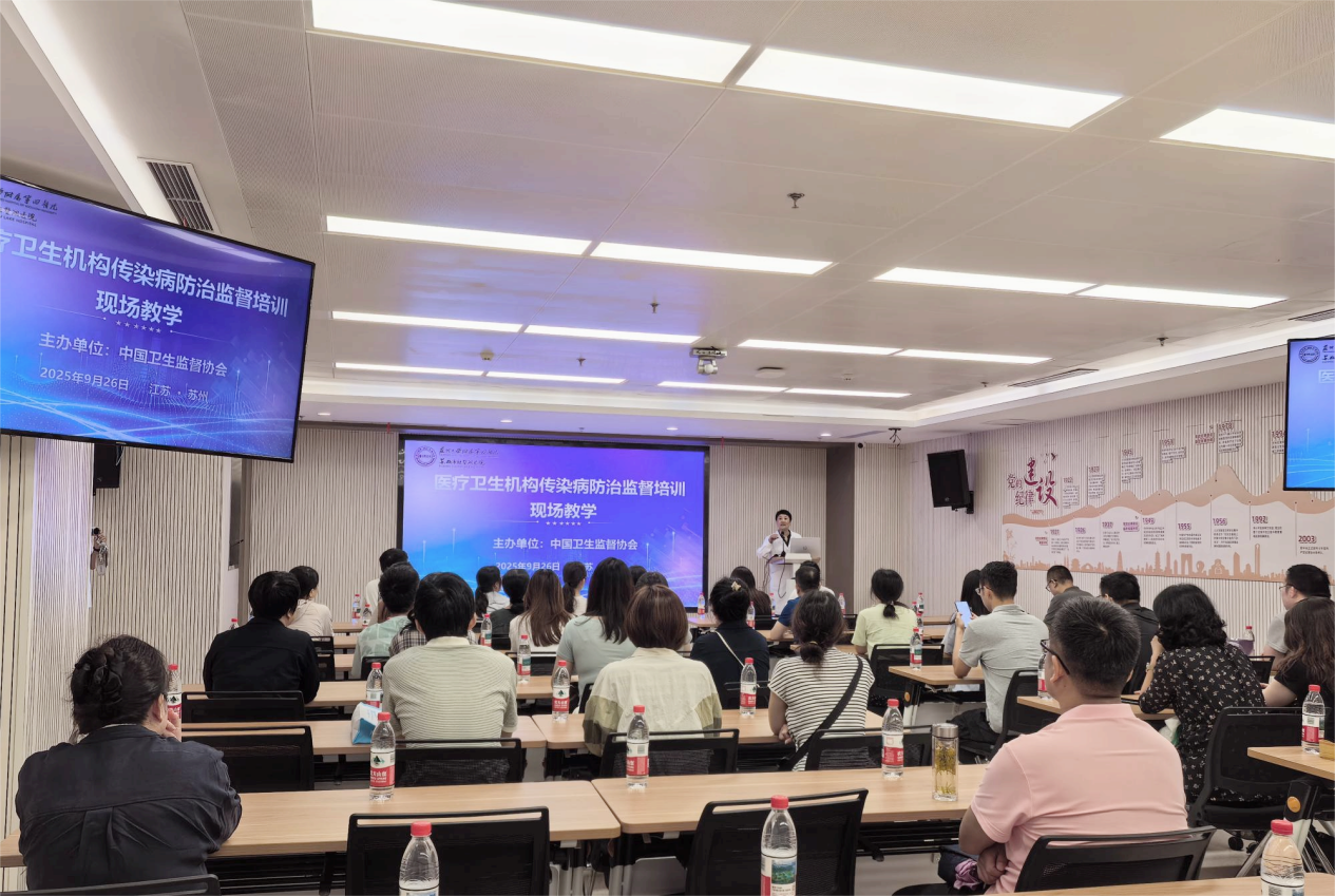 本次培训采用“理论教学+典型案例教学+模拟执法教学”三位一体的培训模式,依托苏大附四院作为实训医院,开展医疗机构现场带教实践。培训采取分组同步轮转的方式,四组人员按不同路线依次参观并听取讲解。教学范围涵盖血液净化中心、消毒供应中心、内镜中心和临检中心等重点部门,内容聚焦科室消毒隔离、病原微生物实验室生物安全和医疗废物处置等院感防控关键环节,并针对学员提问进行了现场解答。通过“沉浸式执法现场体验”帮助学员近距离了解传染病防治的实际工作流程,强化卫生监督执法直观认识,进一步提升了执法与应急处置能力。
