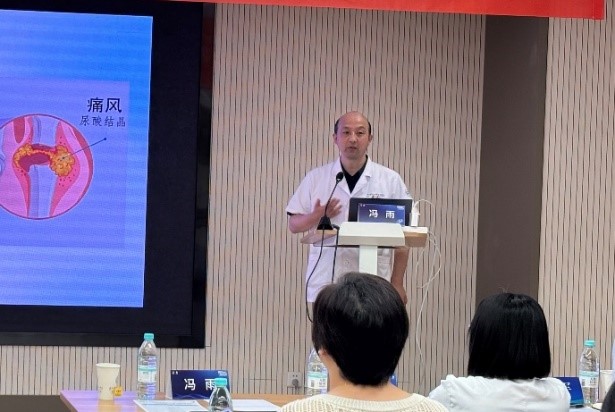 学术汇报环节,苏大附四院的专家团队详细阐述了中心未来的管理蓝图。内分泌科邵新宇主任医师就肥胖症的规范化诊疗与分级转诊策略进行了规划;内分泌科孙红副主任医师聚焦糖尿病,介绍了从社区筛查、患者教育到并发症防治的“两筛三防”工作计划;风湿免疫科冯雨主任医师则针对高尿酸血症及其引发的痛风等疾病,提出了跨学科协作的综合防治方案。三位专家的汇报内容翔实、思路清晰,中心后续工作开展明确了具体方向。