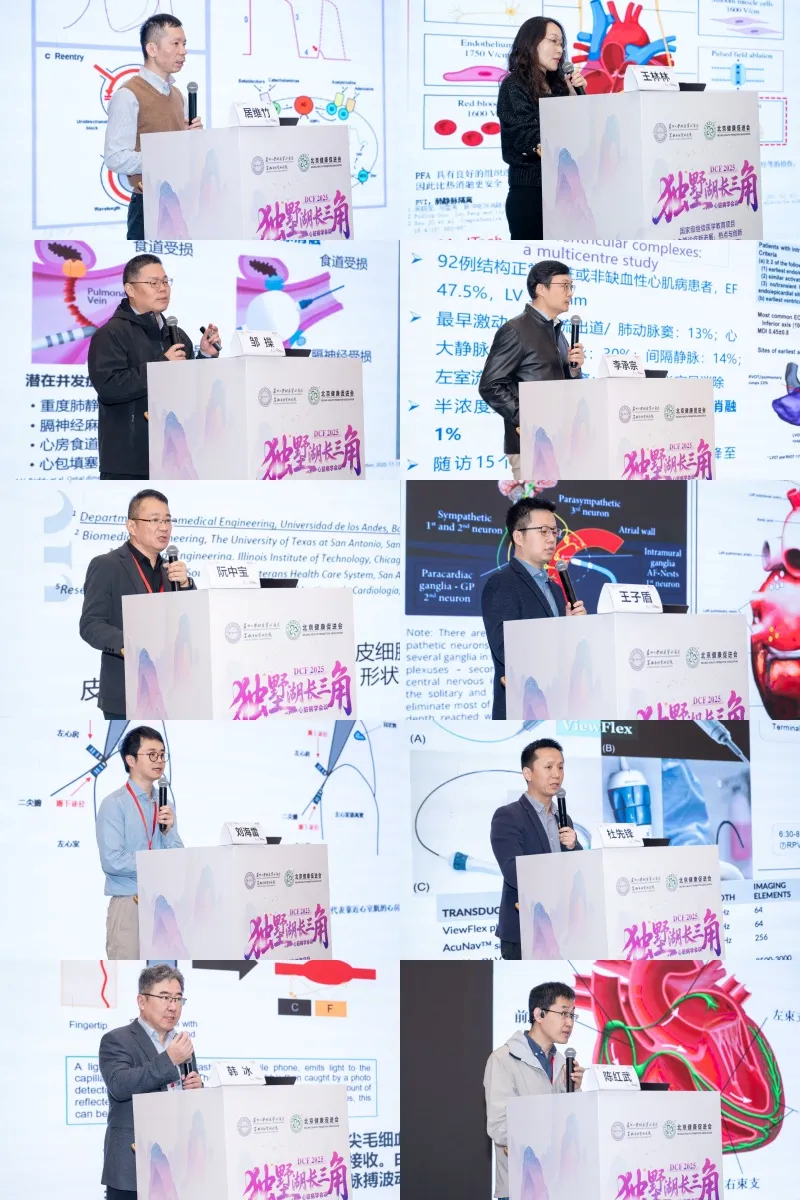 无锡市第二人民医院金艳副教授从原理到临床全景解读“脉冲电场消融在房颤治疗中的优势”;苏州大学附属第二医院李晖副主任则以前瞻性病例展示“前庭电位指导的房颤消融”;南京市第一医院钱炜春副主任聚焦安全性,剖析“PFA相关冠脉痉挛”的发生机制与应对策略;常州市第二人民医院纪元主任带来了“肥心病猝死风险等级分层”话题的分享;南京市第一医院朱建成主任畅谈“RDN多领域应用及未来发展”,展望肾动脉消融从高血压走向代谢综合征的广阔前景;江苏省人民医院褚明副教授介绍了“重大慢病数智整合防控的思考和泰州实践”,分享基层医疗数字平台的建设经验;温州医科大学第一附属医院肖方毅主任汇报了“PFA在持续性房颤中应用的研究进展”;南通大学附属医院施林生副教授呈现了“脉冲场消融的期许与现实:循证医学的审视”,用系统评价方式提醒学界在拥抱新技术同时仍需长期随访与真实世界证据。