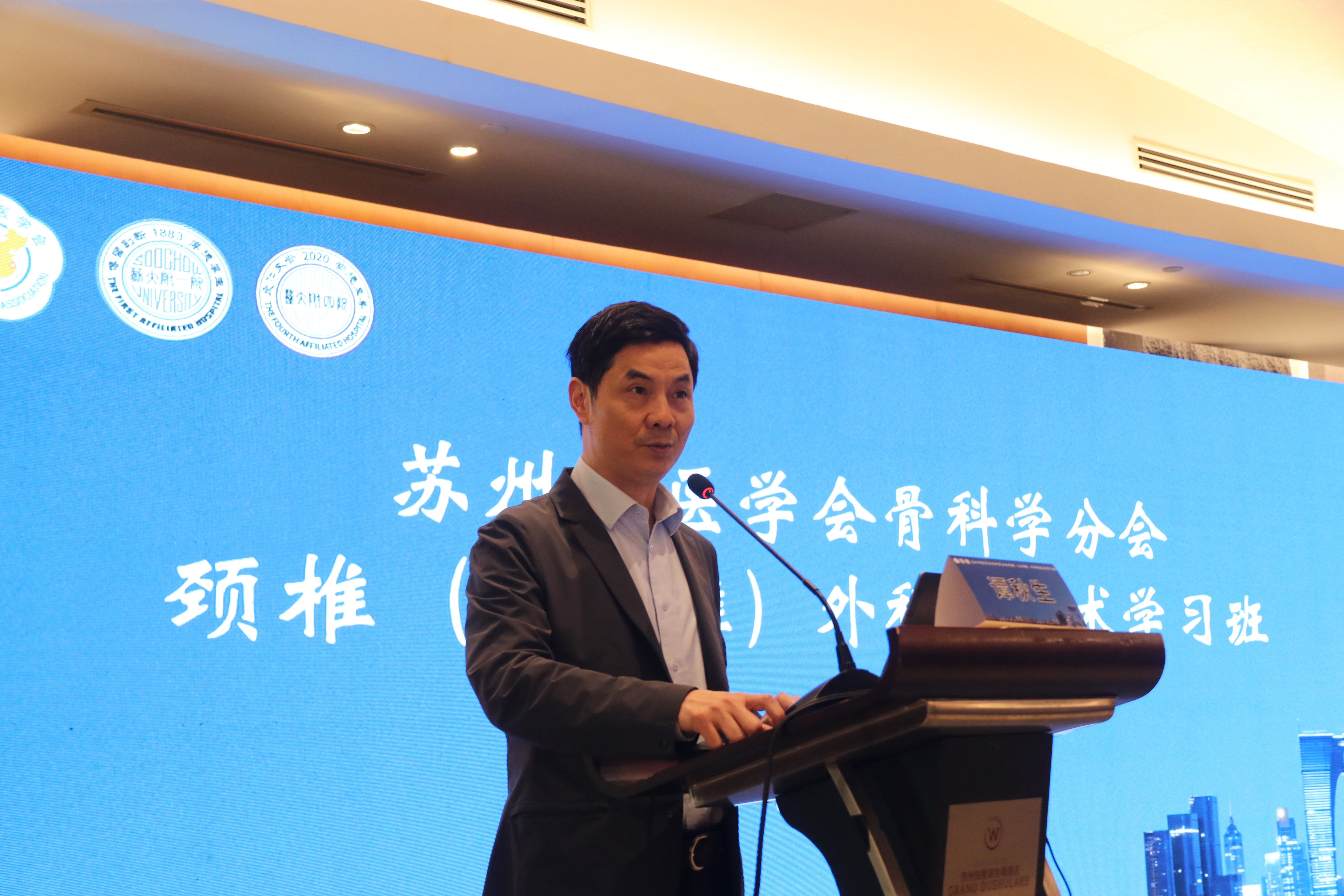 苏州市医学会谭秋生秘书长致辞,他高度赞扬了苏州骨科界在守护人民健康事业上做出的卓著贡献,对奋斗在医疗一线的各位脊柱微创精英表示了衷心感谢。他表示,在姜为民主任的带领下,经过数年的努力,苏州的脊柱微创事业得到了快速的发展,一系列先进技术得以应用,让苏城百姓享受到了医学技术进步带来的实惠。
