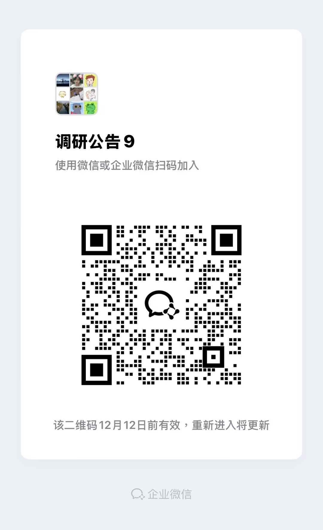 9. 各报名公司扫码加入调研公告群(群二维码见附件4),并修改备注名为报名公司名称(未修改将不定时清除),方便后续通知参加介绍会。