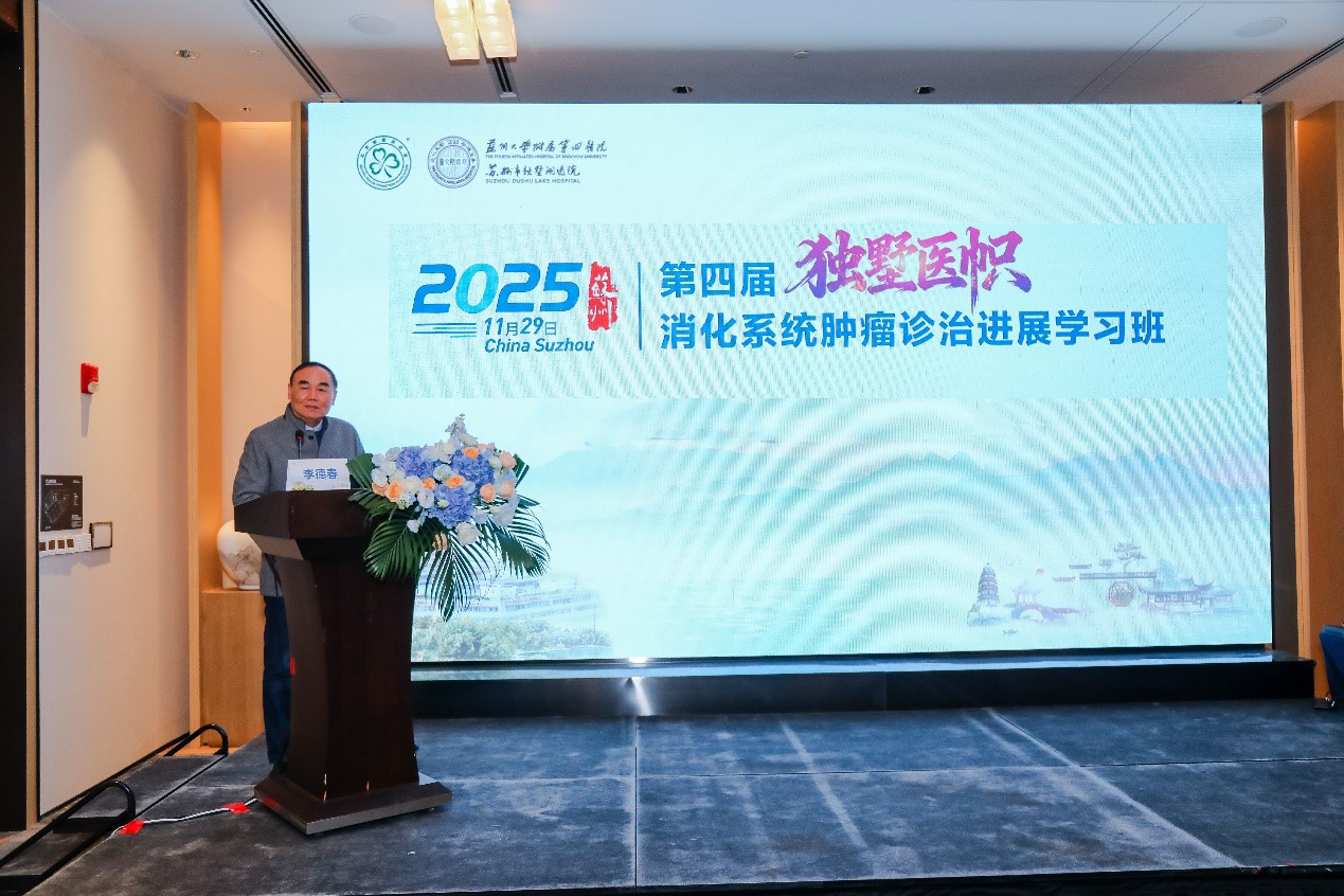 苏州大学附属第四医院普外科临床首席专家李德春教授致辞。他表示,消化内科和消化外科之间的关系密不可分,创建消化疾病中心,实现胃肠道疾病诊治的微创化、精准化和个体化,将是未来疾病诊疗的总体方向。