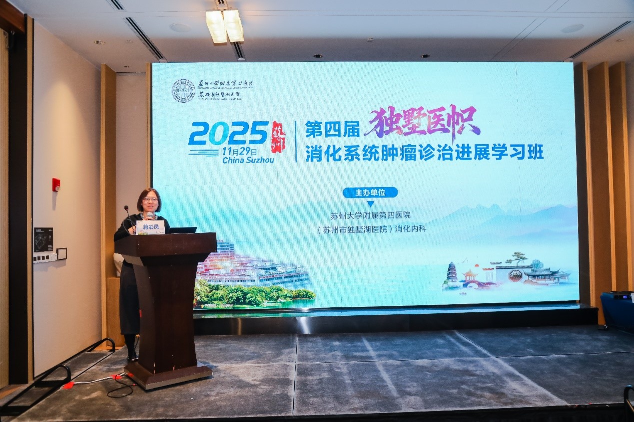会议尾声,苏州大学附属第四医院消化内科蒋彩凤主任医师为本次学习班作总结。她希望本次学习班的开展能够为参会人员提供宝贵经验助力提升区域医护人员在消化系统肿瘤等方面的诊治能力。