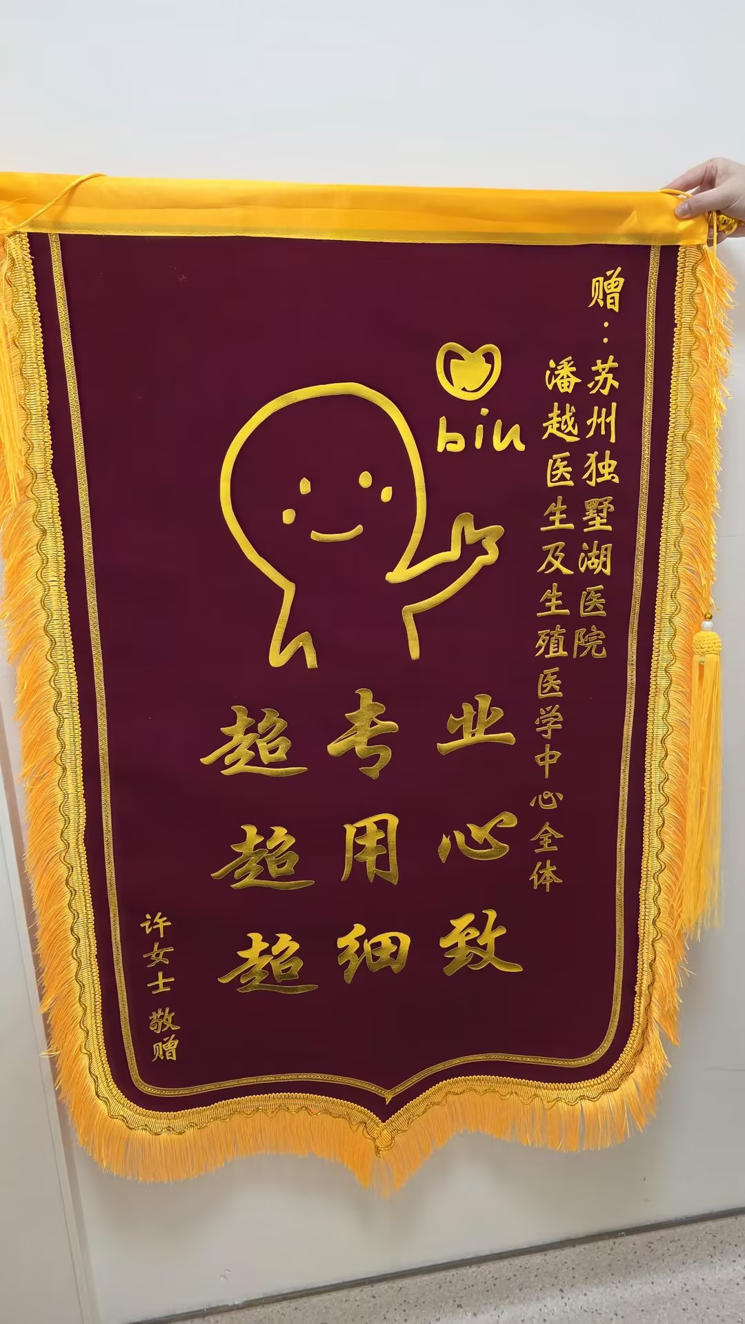 患者许女士赠送锦旗感谢我院生殖医学中心潘越医生及中心全体医护